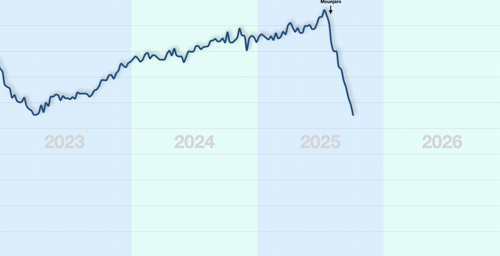 Jetzt ist klar, was ich mit meiner Anspielung auf einen Aktienkurs meine, oder?! Ich denke, dass man auch ohne den „Mounjaro-Pfeil“ relativ leicht erkennen kann, ab wann sich etwas massiv verändert hat. Und da ich (aus vielerlei Gründen: zum Glück!) kein Aktienkurs bin, freue ich mich natürlich sehr über diese Entwicklung. Da ich weiß, dass es da draußen außer mir noch andere Nerds gibt (wäre ich ein junger, dynamischer Youtuber würde ich jetzt sagen: „Grüße gehen raus an den lieben und sehr geschätzten Sp. aus T. an der M. 😘), hier ein paar Erläuterungen zu der Grafik:
